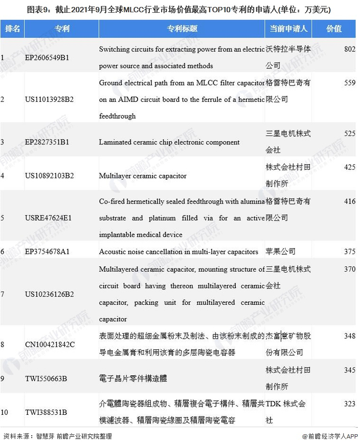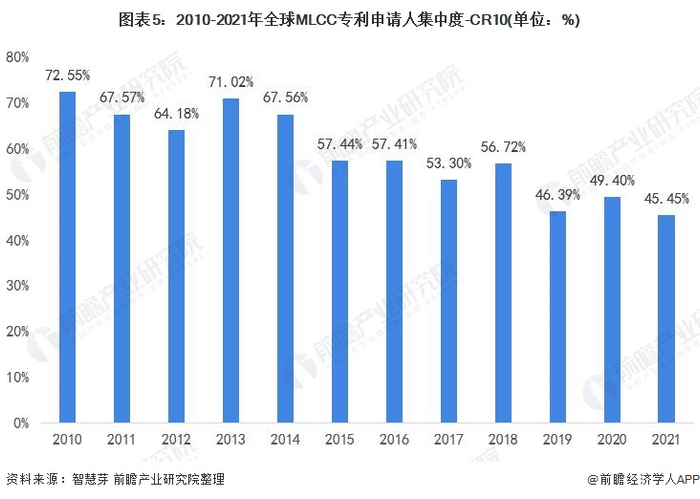 原标题:收藏!2021年全球MLCC行业技术竞争格局(附区域申请分布、申请人排名、专利申请集中度等) 来源:前瞻产业研究院