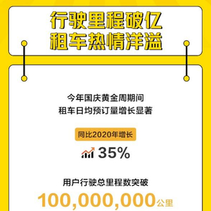神州租车十一出行大数据显示,今年国庆黄金周期间,租车订单总量增长显著,日均预订量较2020年同期提升近35%,且从出行半径上来看,用户行驶总里程数突破1亿公里,最长行驶里程更是达到了3867公里,相当于从沈阳开到三亚。