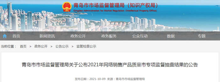 中国质量新闻网讯 近期,青岛市市场监督管理局完成了网络销售产品质量市专项监督抽查工作。本次共对16种75家企业经营的100批次产品进行了监督抽查。
