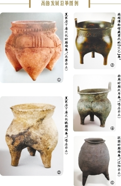 苏秉琦曾提出鬲的纵向发展谱系:从仰韶文化小口尖底瓶构成袋足类器→原始鬲→龙山鬲→殷周至战国矮脚鬲→杜伯鬲→小屯鬲等逐渐降低裆高,直到最后转化为无足器具,接近锅。也就是说,夏家店下层文化大量使用的灰陶鬲的源头来自黄河流域的仰韶文化。