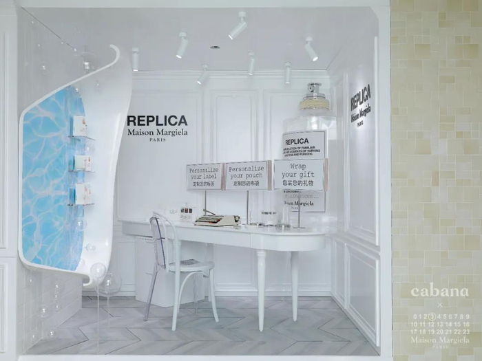 9月30日, Cabana × Maison Margiela马吉拉香氛联名Margiela HoMe主题橱窗亮相于Cabana上海静安嘉里中心、安福路话剧中心双店。 这是马吉拉香氛在中国的首个家具主题橱窗,主题为Margiela HoMe,意味着让家成为记忆的珍藏之地。橱窗的设计提取香氛与家具共有的温馨场景元素,以全新的视角将香薰及身体护理产品一同呈现出来。 Cabana静安嘉里中心店的橱窗灵感来自家中浴室,打造了一个清澈梦幻的香氛沐浴环境;Cabana上海安福路话剧中心店内营造的是家中会客厅及浴室的场景。