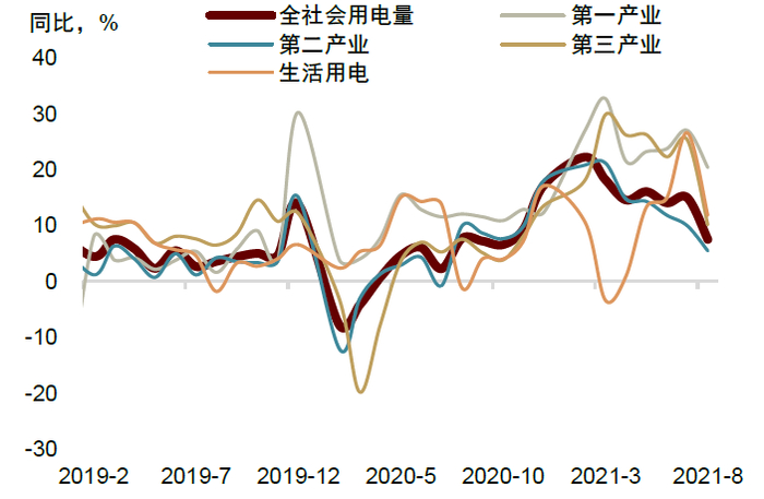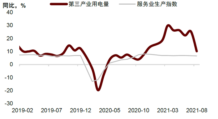 图表:三产用电量快于服务生产,需求弹性提升