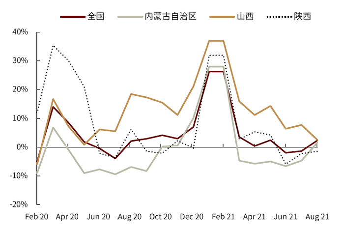 图表:主要省份原煤产量同比增幅