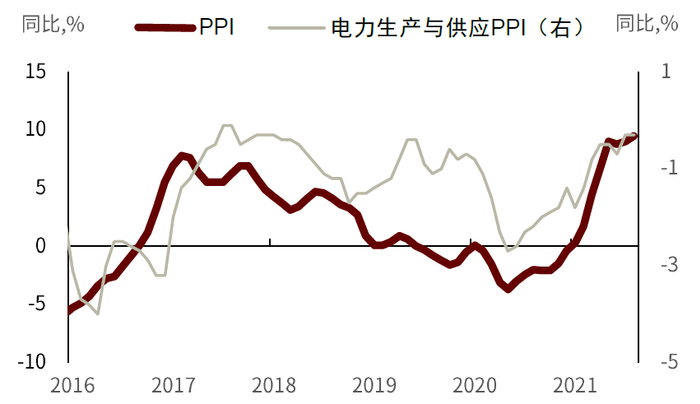 图表:总体PPI与电力行业PPI的关系
