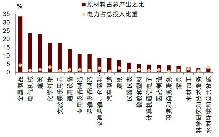 图表:中下游行业原材料占比较高