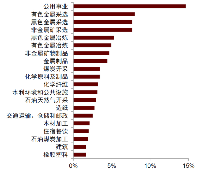 图表:总投入中电力直接占比前20大行业