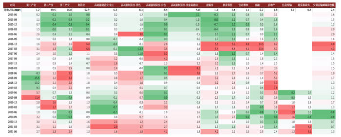图表:各行业用电需求弹性估算(2季度移动平均)