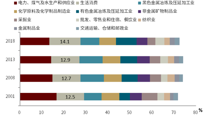图表:用电消费量的主要行业分布