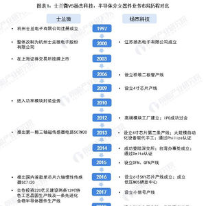 中国半导体分立器件经过了60多年的发展和积累,成就了全球半导体分立器件产业制造基地的地位。目前,我国国产半导体分立器件制造厂商呈现出“大而分散”的市场竞争格局,其中士兰微和扬杰科技的展现出较强的市场竞争力。士兰微和扬杰科技的半导体分立器件业务布局历程如下: