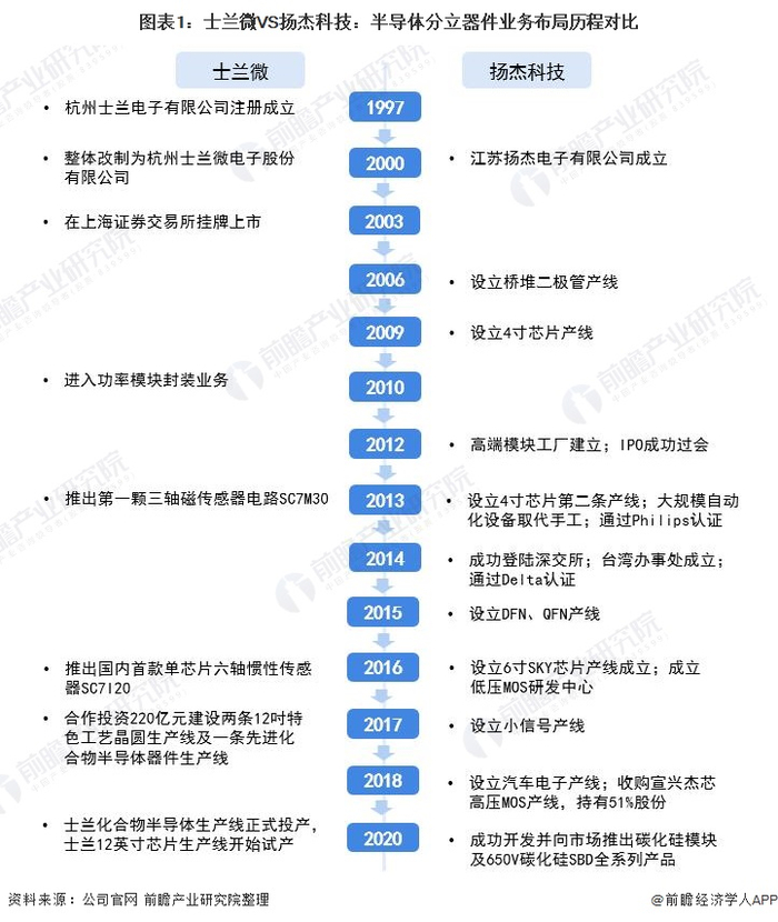 1、士兰微VS扬杰科技:半导体分立器件业务布局历程