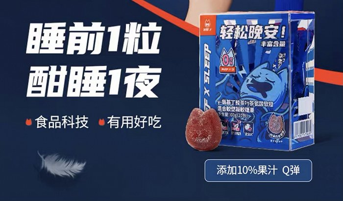 新消费品牌在软糖、果冻等零食形态上,加入褪黑色、GABA(γ-氨基丁酸)、玻尿酸、胶原蛋白等材料,摇身一变,成了功能型食品,进而身价暴涨,一颗助眠糖能卖到3块钱,一盒20颗助眠糖,天猫的活动价还要55元。