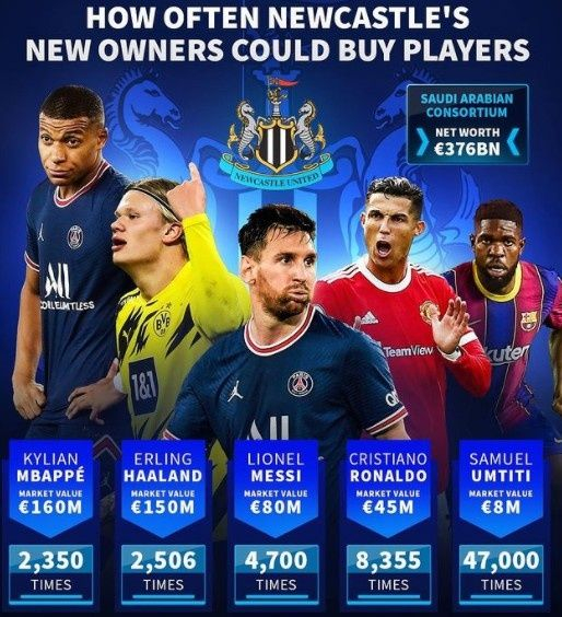 当然,在足球领域,尽管俱乐部缺钱往往寸步难行,但有时候金钱也并非是万能的。由于财政公平法案的存在,纽卡斯尔联队在未来几年其实并无法完全放开手脚在转会市场上收购巨星。