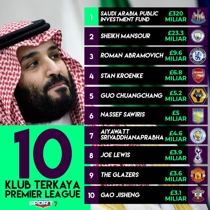 今年以来,有关华尔街资本进军欧洲足坛的报道已屡见报端,而作为近年来玩转欧洲足坛的“常客”,中东的石油大亨在足坛掀起狂风骤雨的案例,也早已不是什么稀罕事。不过这一回,收购纽卡斯尔联队的财团实力之强大,依然令球迷们可谓大开眼界——事实上,即便把所有其他英超球队幕后金主们的财富加起来,或许也不够打!