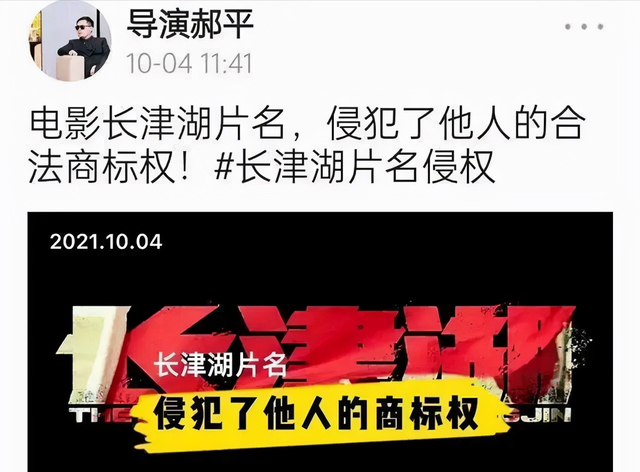 火爆!刚刚过去的国庆,主旋律影片《长津湖》的表现,生动诠释了这个词。众多观影者被感动,泪洒现场,而多个购票平台评分达到9.5,观众普遍反映这部影片是爱国主义教育的佳作。不过,一个网名为“导演郝平”的人,在某社交平台发布视频,称电影《长津湖》侵犯了他及朋友的商标权和著作权。这到底怎么回事?
