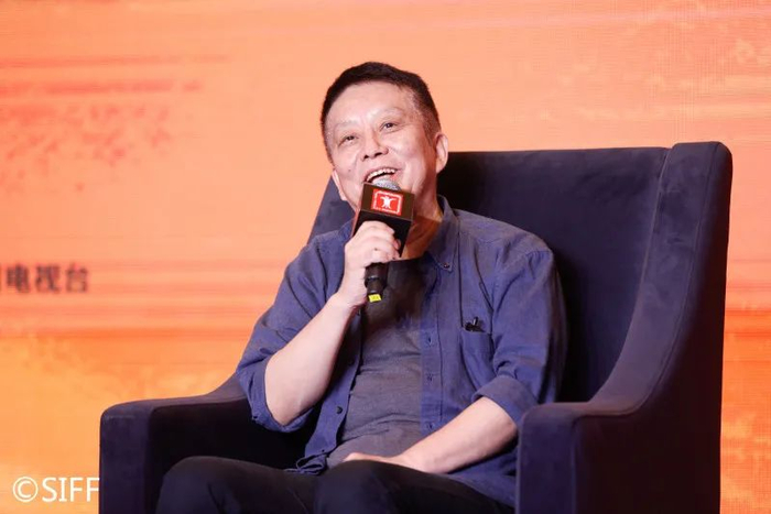 黄建新出席本届上海国际电影节的金爵奖评委主席论坛。
