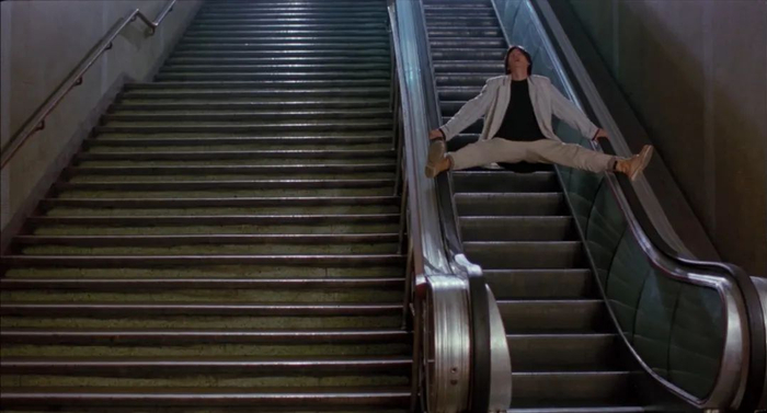《错位》剧照美术上的装置艺术特征,贯穿黄建新1980年代的创作。披着科幻外衣的《错位》,场景更具造型感,疏离又怪诞。根据王朔小说改编的《轮回》,他把北京的地铁站拍得像冰冷的工业展馆。