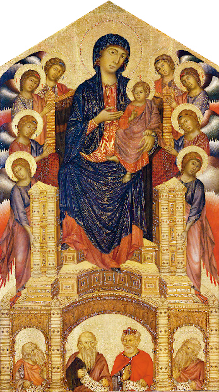 (公元1290—1300年) 契马布埃 宝座上的圣母子和先知 壁画 〔意〕佛罗伦萨乌菲兹美术馆藏