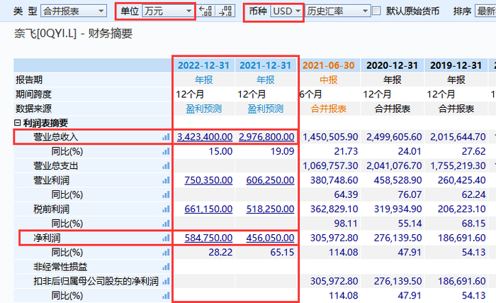 未结束的2021年和还未到来的2022年,奈飞均预测业绩盈利 图片来源 wind截图