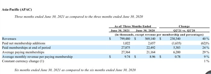 来自于亚太地区的营收 图片来源 奈飞财报截图