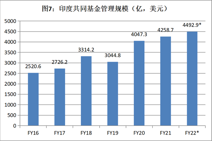 来源:Association of Mutual Funds –AMFI,相关数据直接以美元统计。FY22为截止2021年6月份数据。