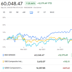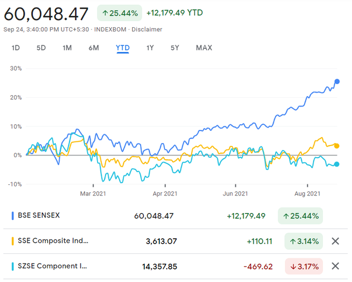 在资本市场方面,以共同基金行业来看,截至 2021 年 6 月,印度共同基金的资产管理规模为4492.9 亿美元,账户总数为1.026亿户。印度互惠基金协会 (AMFI) 曾有个目标,到 2025 年,AUM达到14.7 万亿美元,投资账户达到 1.3 亿户,以目前进展来看,账户数这块已非常接近目标。从证券市场主要股指来看,印度两大股指之一的SENSEX指数在2月到4月间因疫情恶化而回调,跌幅超10%,但疫情边际改善后市场开始强劲回补,自今年4月20日的低点47705.80一举拉升至9月24日的60048.47,涨幅达25.87%,8月份MSCI印度指数更是走出自2018年以来的最好表现(高出MSCI世界股票指数6个百分点)。