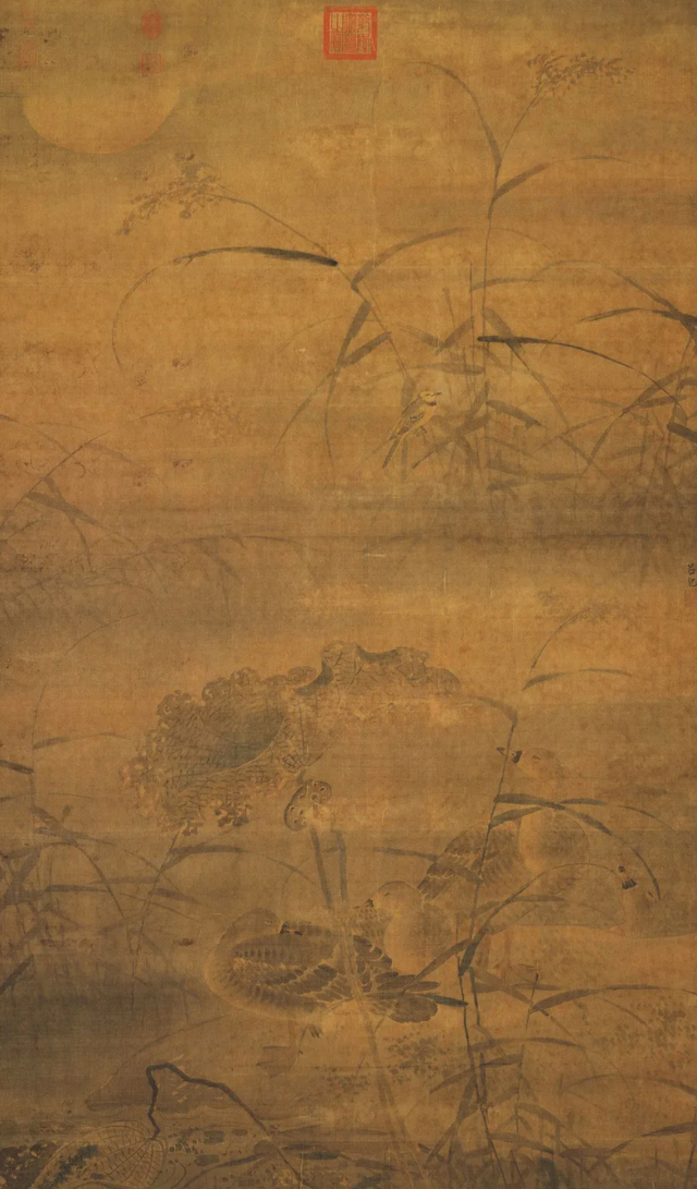 明 吕纪《荷渚睡凫图》