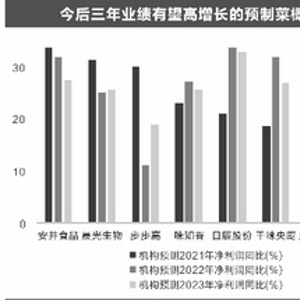 根据5家以上机构一致预测数据,今后三年净利润增速均有望超10%的有8只概念股,分别是安井食品、晨光生物、步步高、味知香、日辰股份、千味央厨、广州酒家、同庆楼。净利润平均增速最高的是安井食品,公司是火锅料制品龙头,机构一致预测其今后三年净利润平均增速为31.12%。