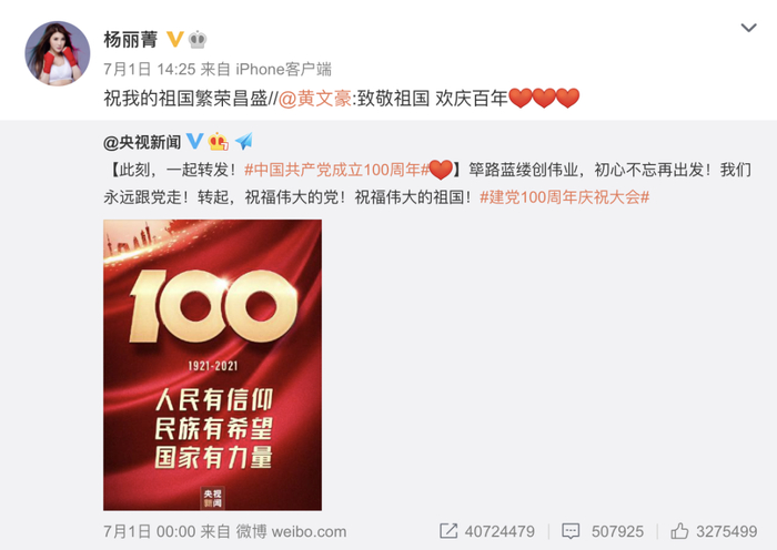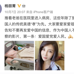 据报道,今年7月1日、10月1日,杨丽菁连发数条微博: