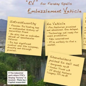 也正因为此前种种不良记录,J Capital Research更加肯定贾跃亭是“中国最知名的证券欺诈者”,并判断FF可能很快会将美国投资者的资金转移到私人手中。