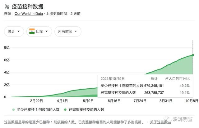 然而,迄今为止,并无证据证明伊维菌素的使用与印度确诊病例的下降趋势有关。与此同时,印度也在积极推广疫苗接种,至今有近半人口已接种至少1剂疫苗。