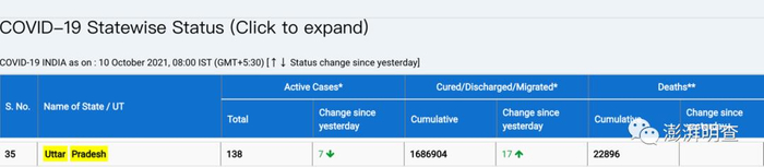 截至北京时间10月10日,根据印度卫生部网站数据,北方邦目前尚存138例新冠病例,单日也仍有新增。因此,美国媒体在10月2日就宣称北方邦“清零”的报道,严格意义上并不准确。