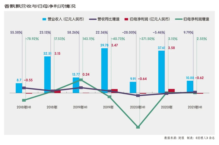 今年上半年,国内新冠疫情基本得到较好控制,香飘飘归母净利润、扣非净利润却延续2020年H1亏损态势,其中后者亏损金额更是进一步加剧。