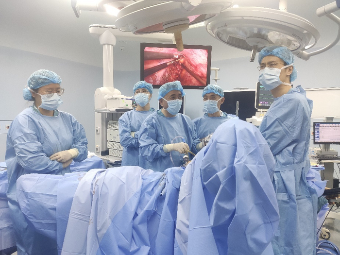 郑民华果断调整治疗策略,运用新技术完成手术:“腔镜手术遇到阻挡视野的困难时,我们会‘中转开腹’把口子扩大。这次我们采用逆向思维,利用腹腔镜的优势,把开腹手术‘转回到’腔镜手术,来完成狭小骨盆内的手术。”