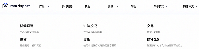 据官网,Matrixport提供包括比特币质押贷款借贷、买币、双币理财、数字资产基金理财等服务。