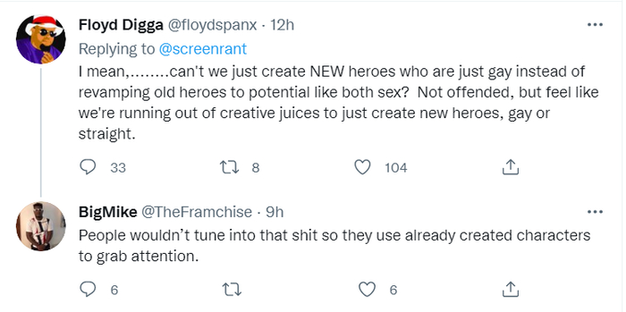 对于再三强调“超人为什么不能是双性恋”的性少数议题支持者,一部分美国网民反驳道,自己并非反对包括双性恋在内的性少数群体,但自己很厌恶刻意炒作政治议题,把小范围的争论绑定到大众生活中的行为。这部分网民特别强调的一个观点是:“你们要宣传自己的政治理念,为什么不能新创造一个英雄形象,而是要挪用一个已经存在的角色?”