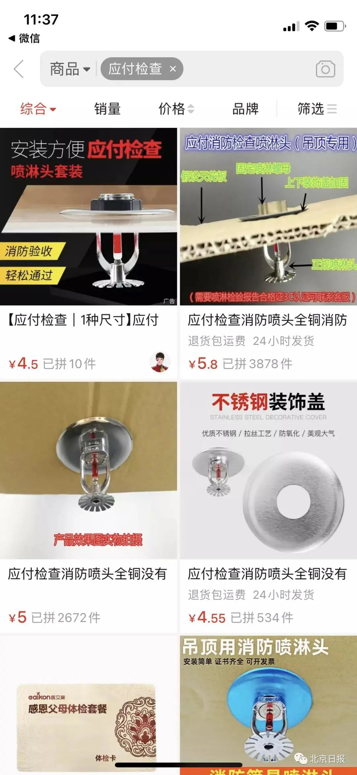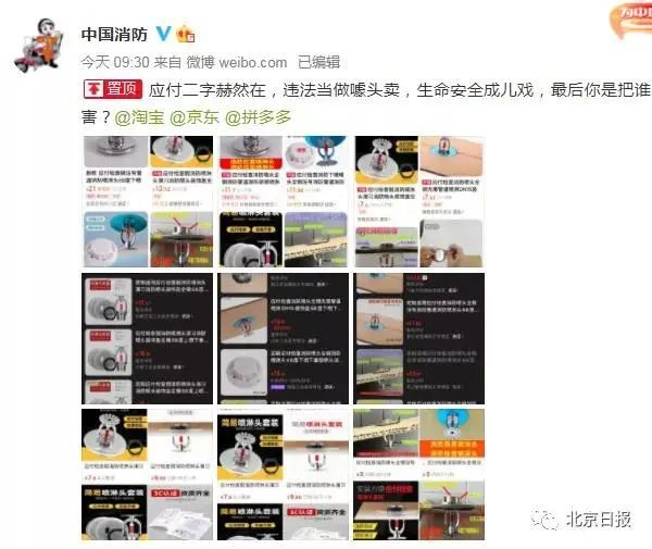 昨天(10月11日)上午,淘宝、京东和拼多多平台上多家店铺因售卖名为“应付检查假消防喷淋头”的物品,被中国消防点名批评:“应付二字赫然在,违法当做噱头卖,生命安全成儿戏,最后你是把谁害?”