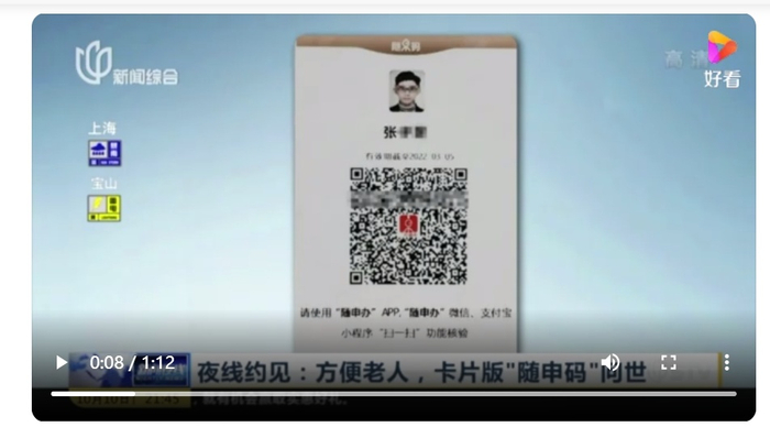 为解决老年人不会用智能手机,无法展示“随申码”的问题,上海推出了“随申码”离线服务。