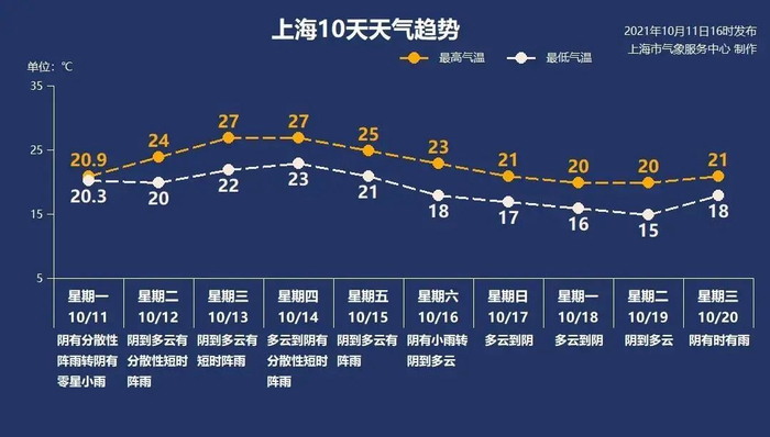 借由中旬的两波冷空气,上海有可能就此告别长达五个月的夏天,进入气象意义上的秋季。提醒大家根据天气变化,及时调整着装。