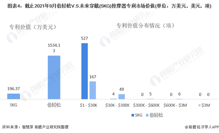 (2)专利市场价值对比:未来穿戴(SKG)专利市场价值更高