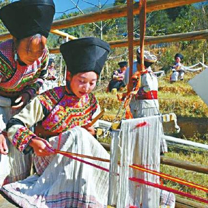 近日,年长傈僳族妇女在指导青年傈僳族妇女纺织傈绣用布。宋明 摄