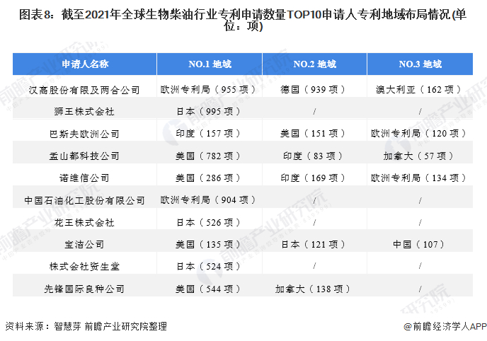 收藏!2021年全球生物柴油行业技术竞争格局(附区域申请分布、申请人排名、专利申请集中度等)