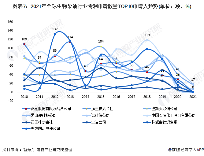 原标题:收藏!2021年全球生物柴油行业技术竞争格局(附区域申请分布、申请人排名、专利申请集中度等) 来源:前瞻产业研究院
