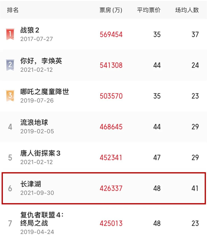 中国大陆电影《长津湖》上映13天,票房突破42.53亿,超过美国大片《复仇者联盟4:终局之战》成为中国大陆影史票房榜第6位。