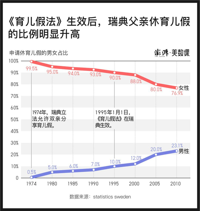 正是这种变相强制男性休育儿假的政策,让越来越多的男性放下手头的工作去休假。这之后,瑞典男性的专属带薪陪产假天数也越来越多,已达到了三个月之多。