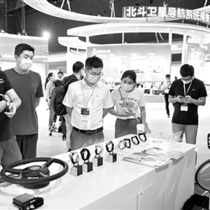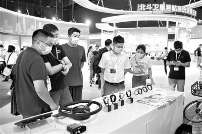 9月16日,在湖南国际会展中心,观众在参观北斗卫星导航系统应用成果展。记者 陈思汗 摄