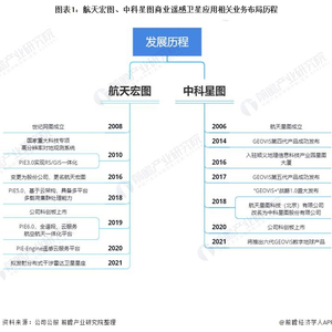 商业遥感卫星行业是我国航空航天产业的重要组成部分,从内部结构来看,商业遥感卫星行业可以简单分为卫星及地面设备制造商和商业遥感卫星运营应用商。航天宏图和中科星图通过加工处理商业遥感数据,提供相关软件服务和技术服务,已成为商业遥感卫星行业运营应用领域的领先企业,两家在商业遥感卫星行业的相关业务布局历程如下: