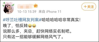 对于呼兰的这一回应,不少网友感慨这段内容直接“封神”。也有网友针对网络谣言,建议推行实名制,消除网络不良风气。