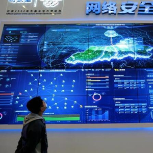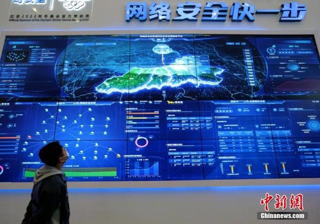 10月11日,陕西西安,2021年国家网络安全宣传周网络安全博览会引人参观。资料图为观众在参观网络数据分析大屏幕。 中新社记者 张远 摄