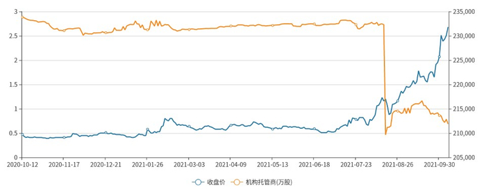 海昌海洋公园这轮行情从7月初启动。从港股龙虎榜数据看,券商对海昌海洋公园增仓较多,持股从7月初的8.2亿股增加到10月8日的12.2亿股。机构托管商对海昌海洋公园的持股则是从7月初的23.2亿股下降到10月8日的21.2亿股。值得注意的是,上述券商和机构托管商增减仓的时间几乎一致在8月16日。期间,海昌海洋公园的总流通股数量并没有变化。