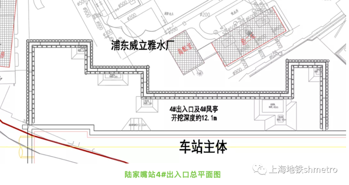 14号线陆家嘴站位于花园石桥路下方,于2021年全面进入车站附属施工,其中4号出入口周边环境复杂,挑战之一就是4号口北侧的上海浦东威立雅自来水厂。